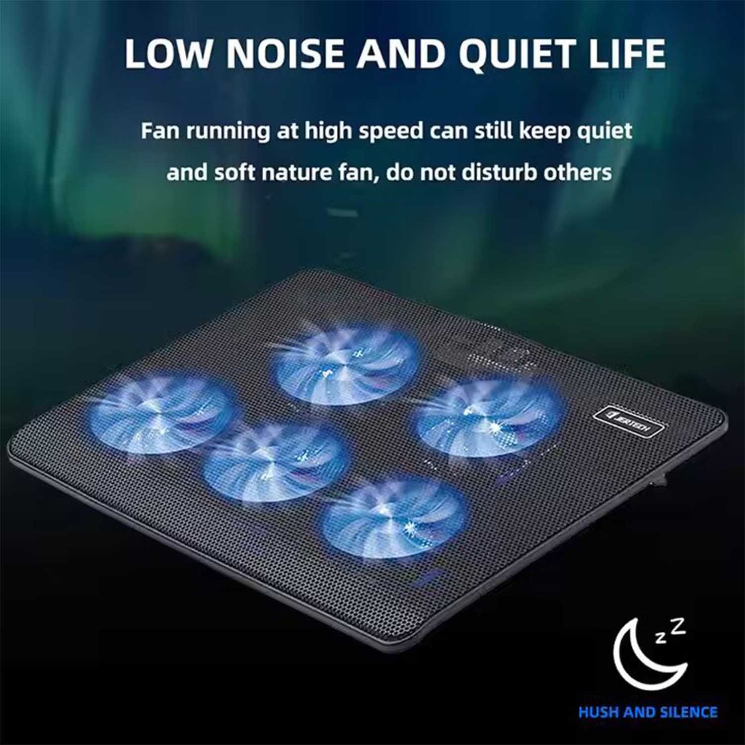 Keep your laptop cool and performance high with the Jertech KL331 — a 5-fan ultra-silent cooling pad built for gamers, students, and everyday users.