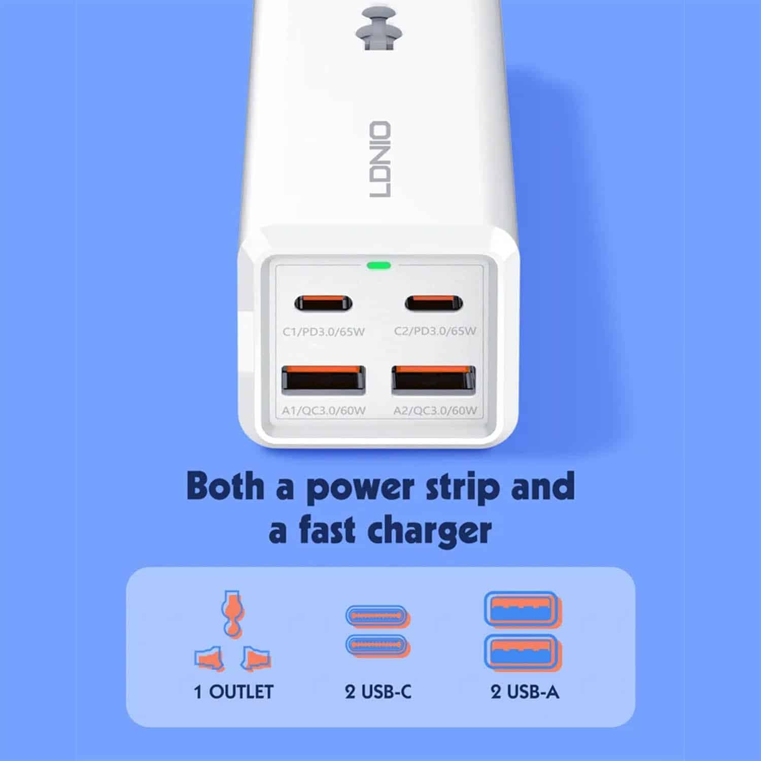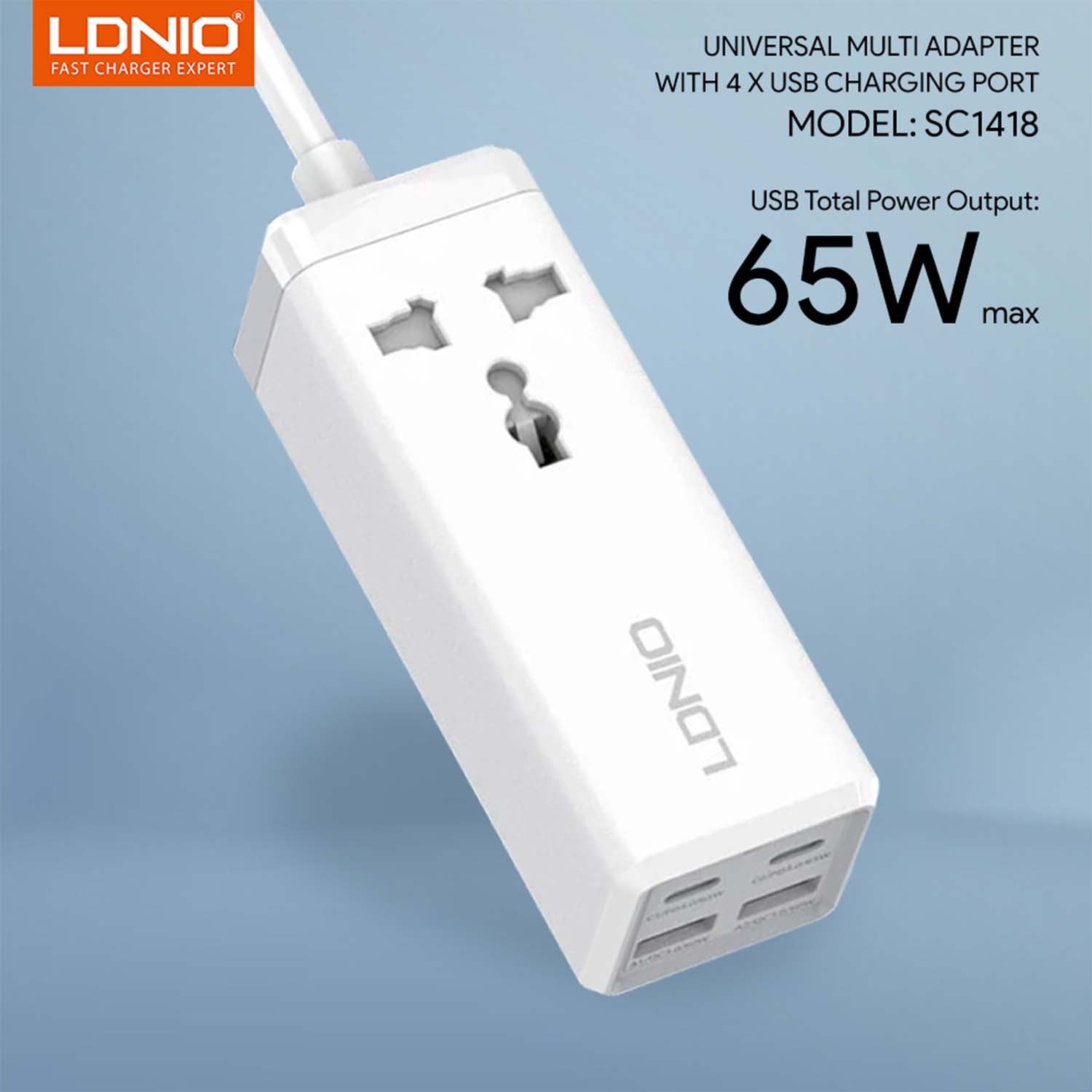 LDNIO SC1418 Desktop Power Strip – 65W Extension Cord with 2 USB-C + 2 USB-A | PD & QC3.0 Fast Charging