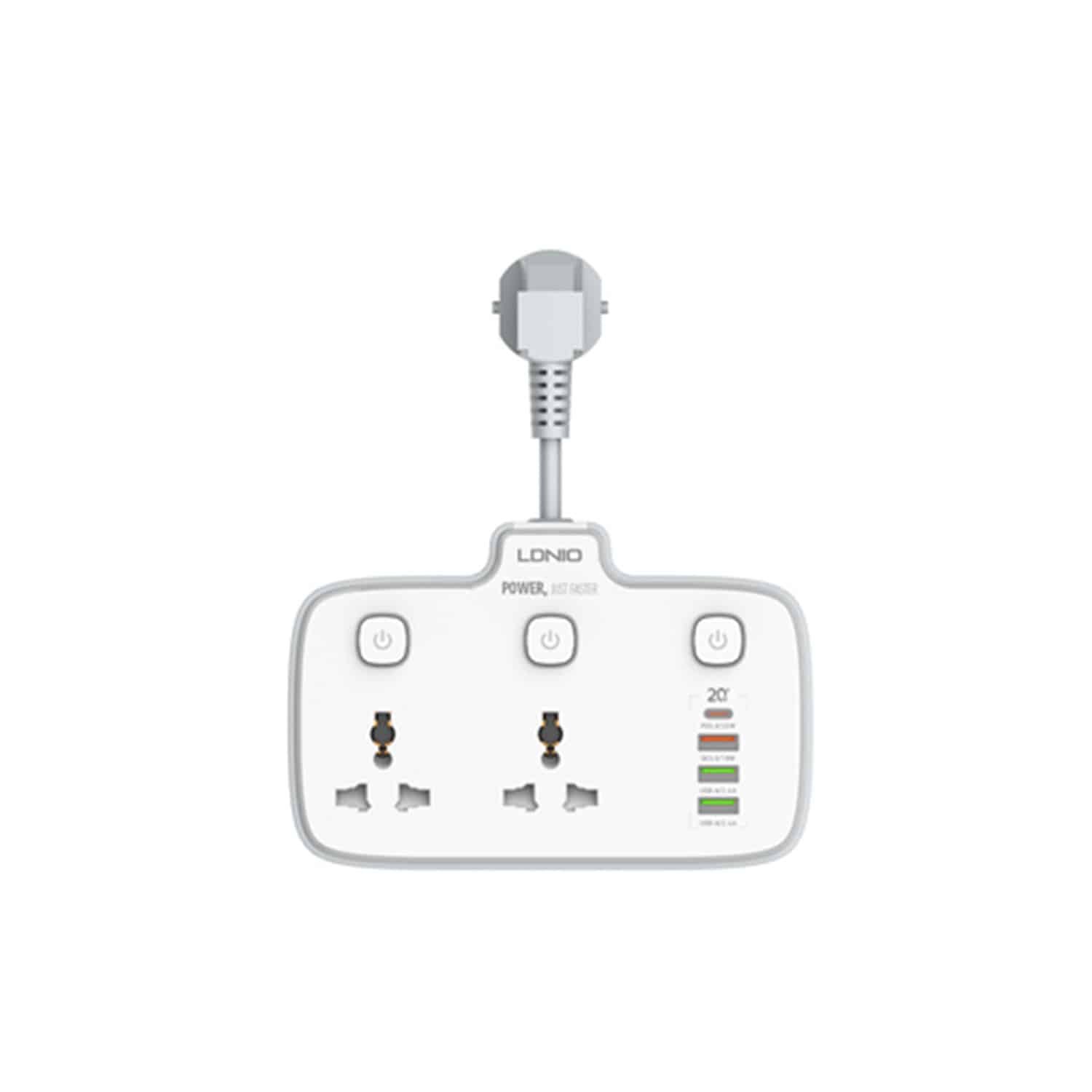 The LDNIO SC2413 Power Socket is the perfect companion for powering multiple devices efficiently and safely. It features 2 universal AC outlets, 1 USB-C PD port, and 2 USB-A Auto-ID ports, supporting QC3.0 for fast charging of smartphones, tablets, laptops, and more.